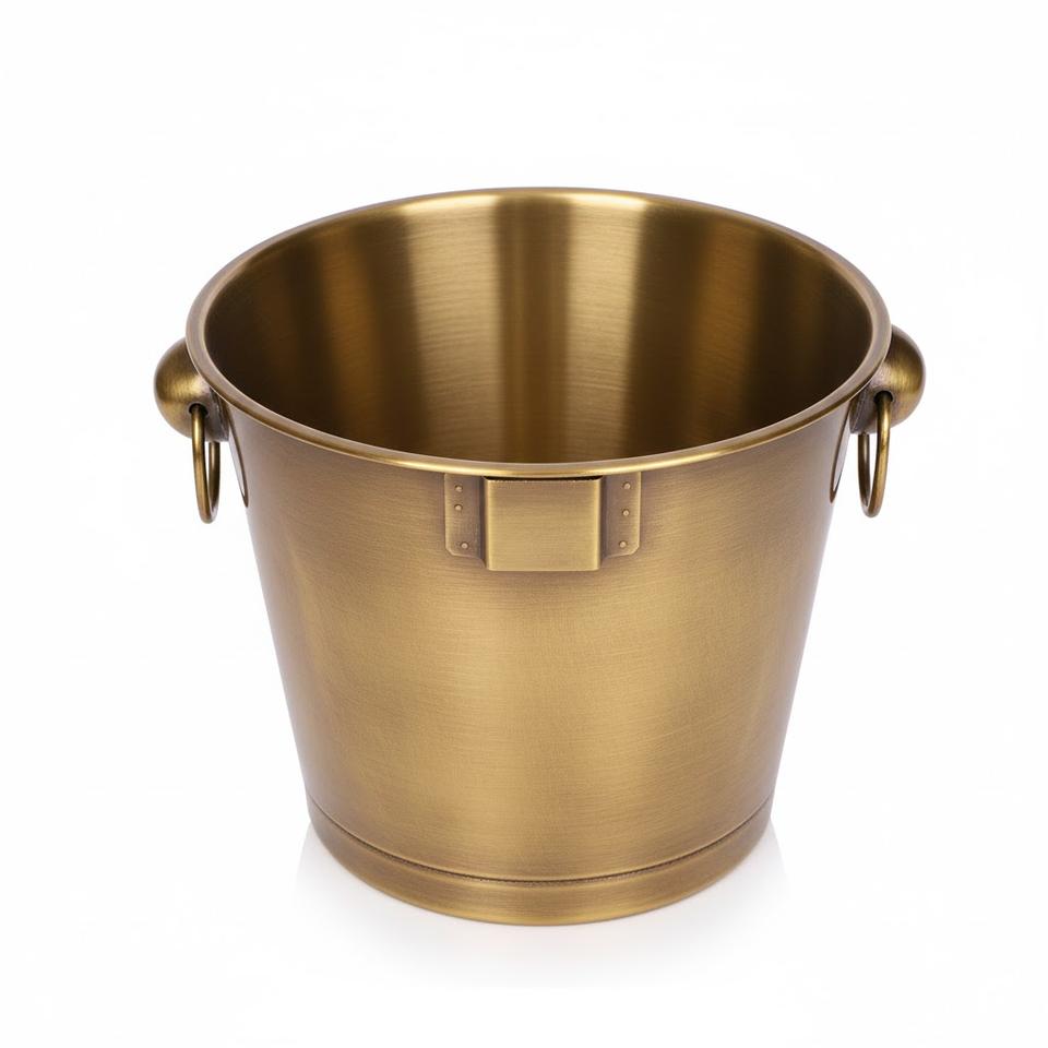 ถังน้ำแข็งทองเหลืองแบบโบราณ ดีไซน์ใหม่ล่าสุด ถังแช่ไวน์โลหะพร้อมหูจับ สำหรับใช้บนโต๊ะ เครื่องทำความเย็นเบียร์
