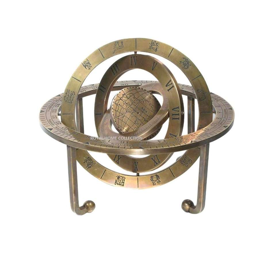 Armillary ทองเหลืองโบราณชุดตกแต่ง3ชิ้นอาร์มารี่ทองเหลืองทะเล