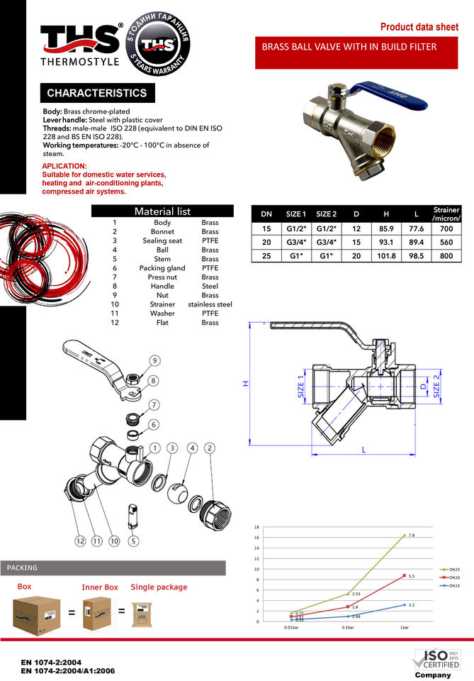 Brass Ball Valve 1" with Built-In Filter | Long-Life Brass Body | THS Thermostyle®