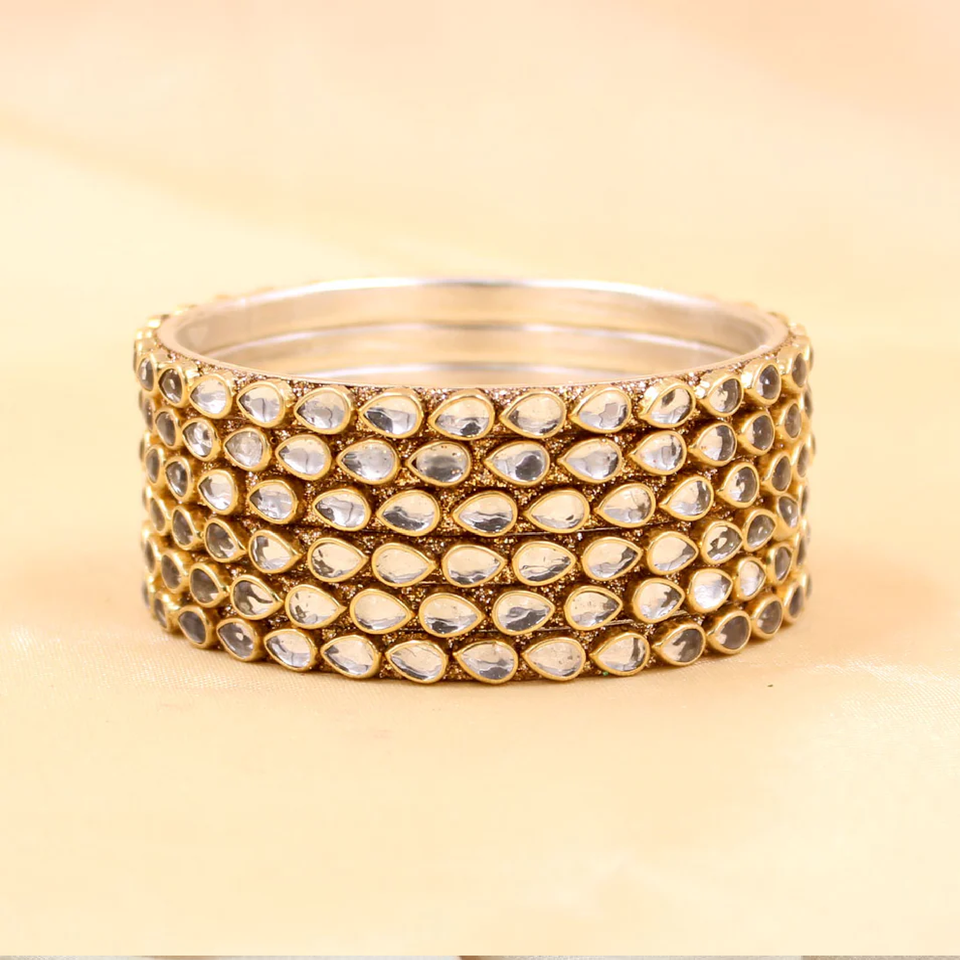 Brass Based Bangles With Ambi Shaped Kundan Stone Jewelry Bracelets High Quality Ladies Hand Jewelry Bangles Factory Price