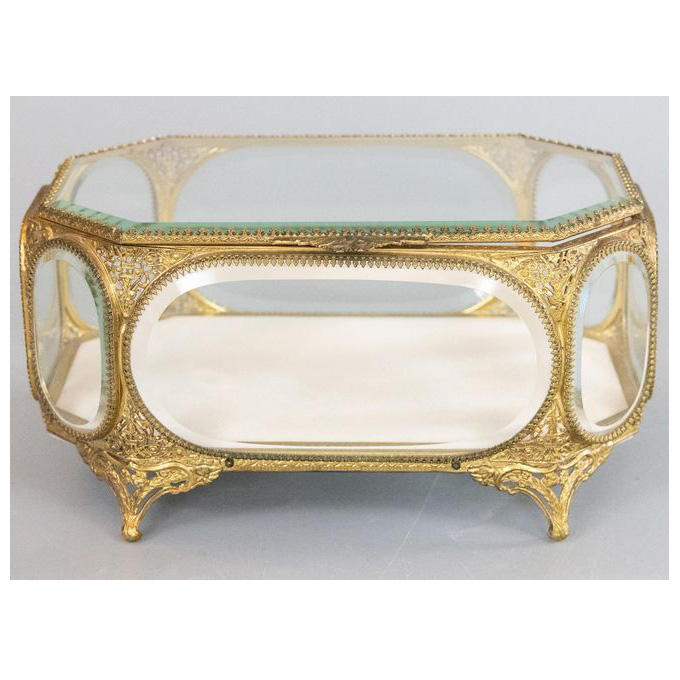 กล่องใส่เครื่องประดับทองเหลืองทรงเหลี่ยม กระจกเจียรขอบ งานแฮนด์เมด ชุบเคลือบด้วยวิธีไดคาสต์ สไตล์โมเดิร์น | กล่องใส่ของตกแต่งบ้าน สี/ขนาด/โลโก้สั่งทำได้