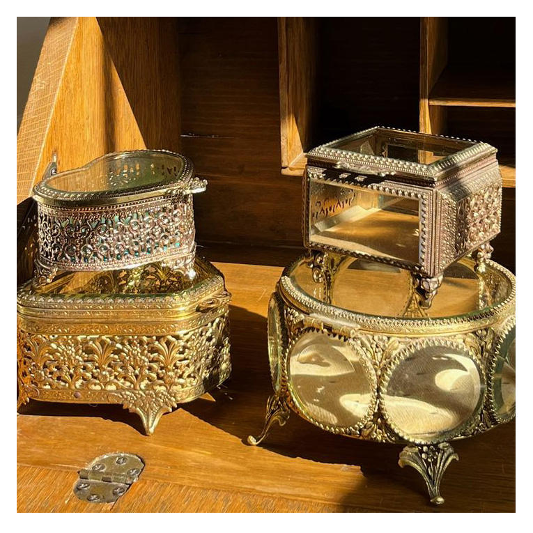 Brass Beveled Glass Modern Jewelry Boxes Antique Brass Frame | Handmade Decorative Trinket Storage Custom Color Size for Export