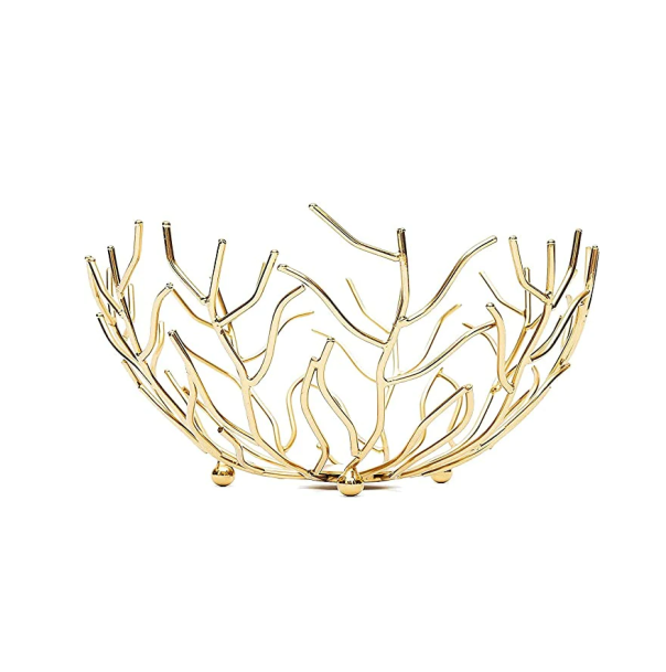 ชามผลไม้ทองเหลืองพร้อมใบดีไซน์เป็นมิตรต่อสิ่งแวดล้อมชุดเสิร์ฟผลไม้แห้งอุปกรณ์ตกแต่งโต๊ะ5ชิ้น
