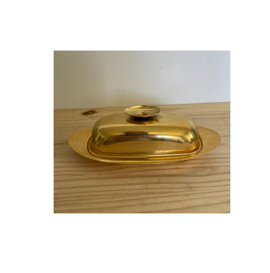 จานใส่เนยทองเหลืองสำหรับใส่เนยที่ใส่เนยทรงกลมทำด้วยมือทำจากทองเหลืองไม่เหมือนใคร