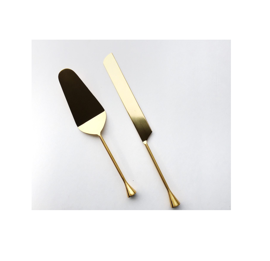 ชุดมีดเค้กทองเหลืองและเซิร์ฟเวอร์พร้อมเครื่องปาร์ตี้ขัดเงาและชุบทองใช้สําหรับห้องครัวและโต๊ะ การออกแบบแบบค้อนชิ้นเดียว