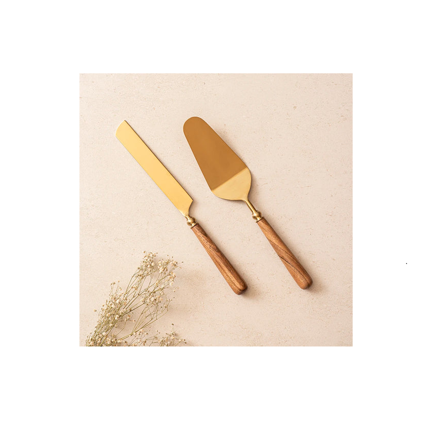 เซิร์ฟเวอร์เค้กทองเหลืองมีดพร้อมด้ามไม้ทาสีในร่มสำหรับงานแต่งงานงานเลี้ยงและงานเลี้ยงวันเกิดอุปกรณ์ตกแต่งเค้ก