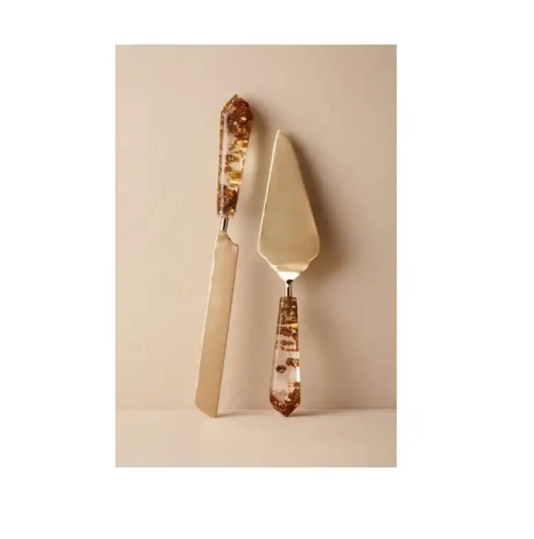 เซิร์ฟเวอร์เค้กทองเหลืองที่ไม่ซ้ํากันสไตล์สีทองที่ทําด้วยมือจับเค้กราคาถูกเครื่องมือเค้กแต่งงานชุดเซิร์ฟเวอร์เค้กปาร์ตี้ใช้เครื่องขายร้อน