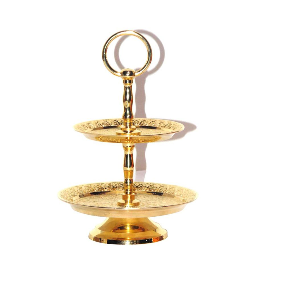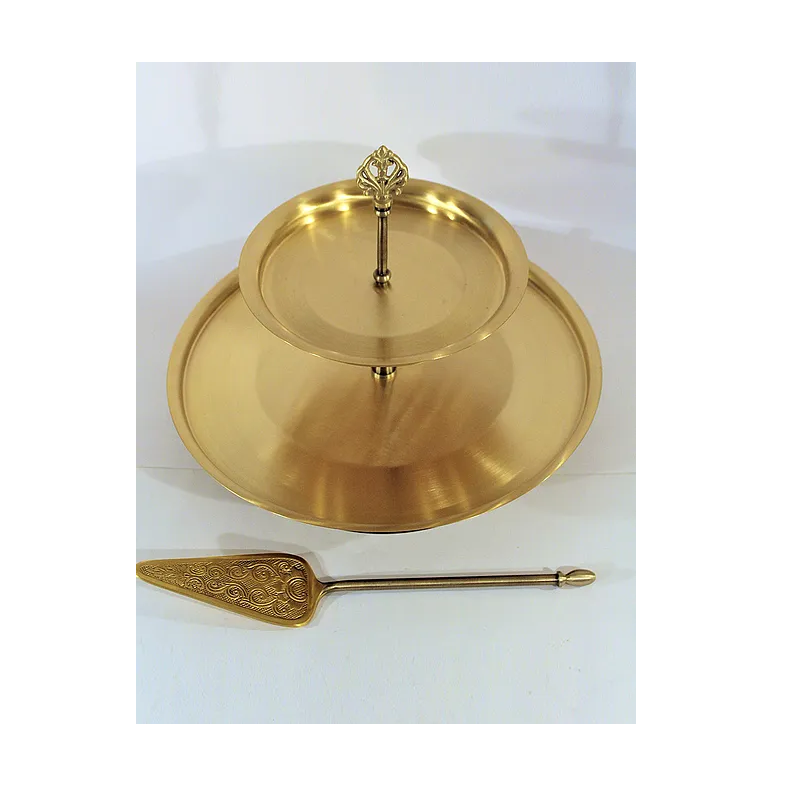 แท่นวางเค้กทองเหลืองสำหรับงานแต่งงานรูปทรงกลมพร้อมมีดตัดเค้กแท่นวางโชว์เค้ก