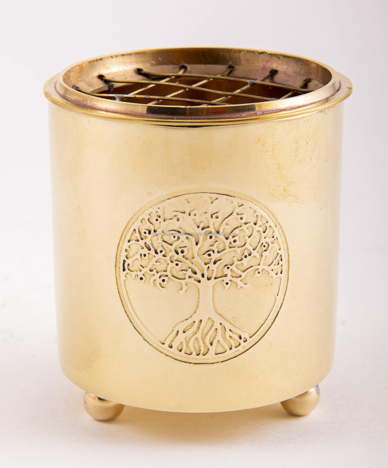 เตาเผาเครื่องหอมทองเหลืองลายไม้จันทน์หอม ลวดลายต้นไม้แห่งชีวิต งานฝีมือแบบตาข่าย ดีไซน์พิเศษสำหรับการทำสมาธิ ฤดูใบไม้ผลิ สไตล์อินเดีย