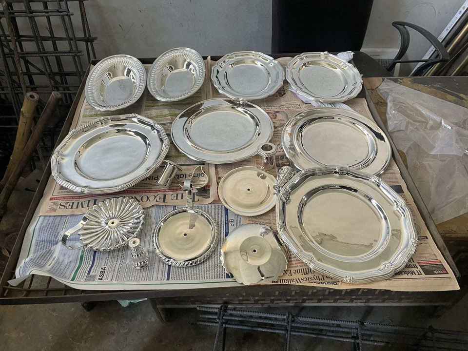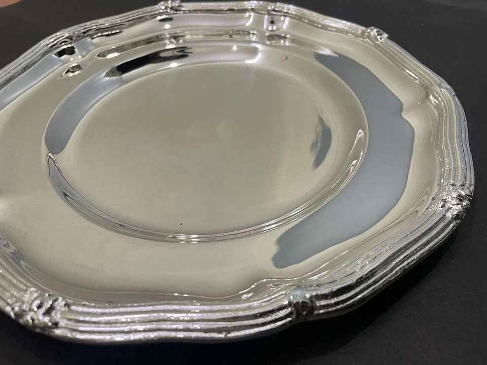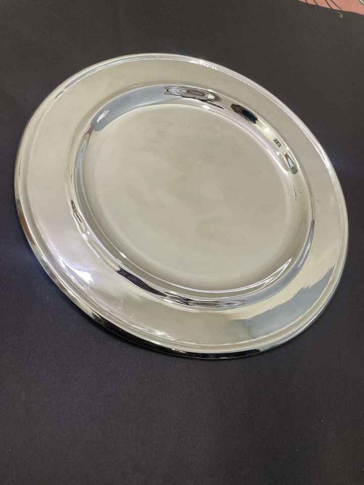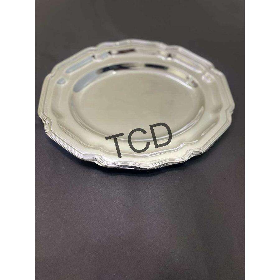 จานรองทองเหลืองสำหรับงานแต่งงาน ลายดอกไม้ จานสีเงินคุณภาพสูง จานตกแต่ง งานฝีมือโลหะ ใช้กับเครื่องล้างจานได้