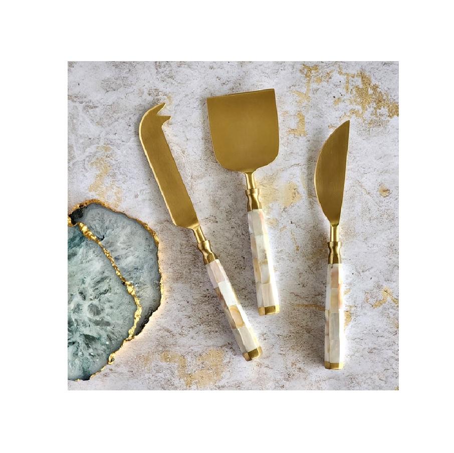 ชุดมีดสับชีสทองเหลืองพร้อมชุดอุปกรณ์บนโต๊ะอาหารสินค้าดีไซน์เรียบง่าย