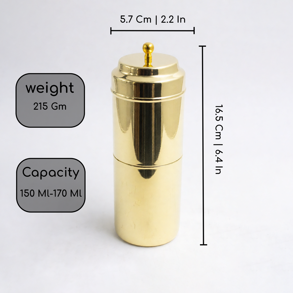 ตัวกรองกาแฟทองเหลืองพร้อมก้านกด แบบอินเดียใต้ดั้งเดิม ผิวมันเงา อุปกรณ์ครัวสำหรับใช้ในบ้าน ของขวัญ ใช้ทำกาแฟ