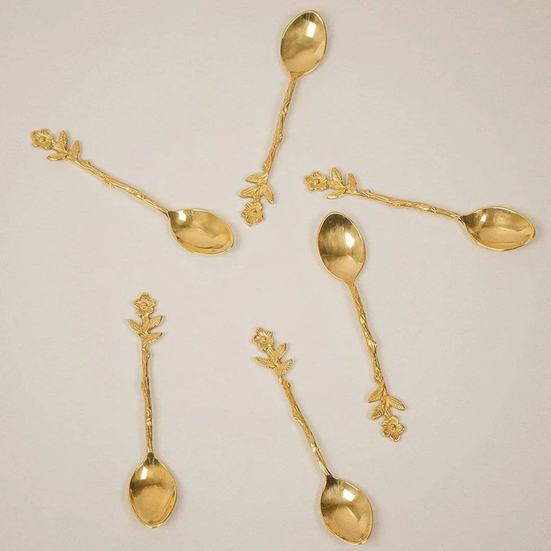 ช้อนทองเหลืองลายดอกกุหลาบ ด้ามสั้น ราคาดีที่สุด สำหรับเด็ก ช้อนขนมหวาน ช้อนทานอาหารค่ำ