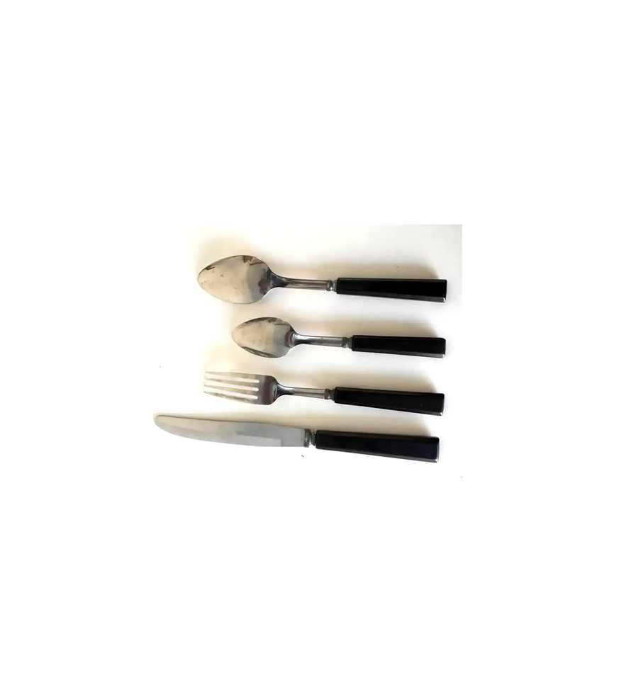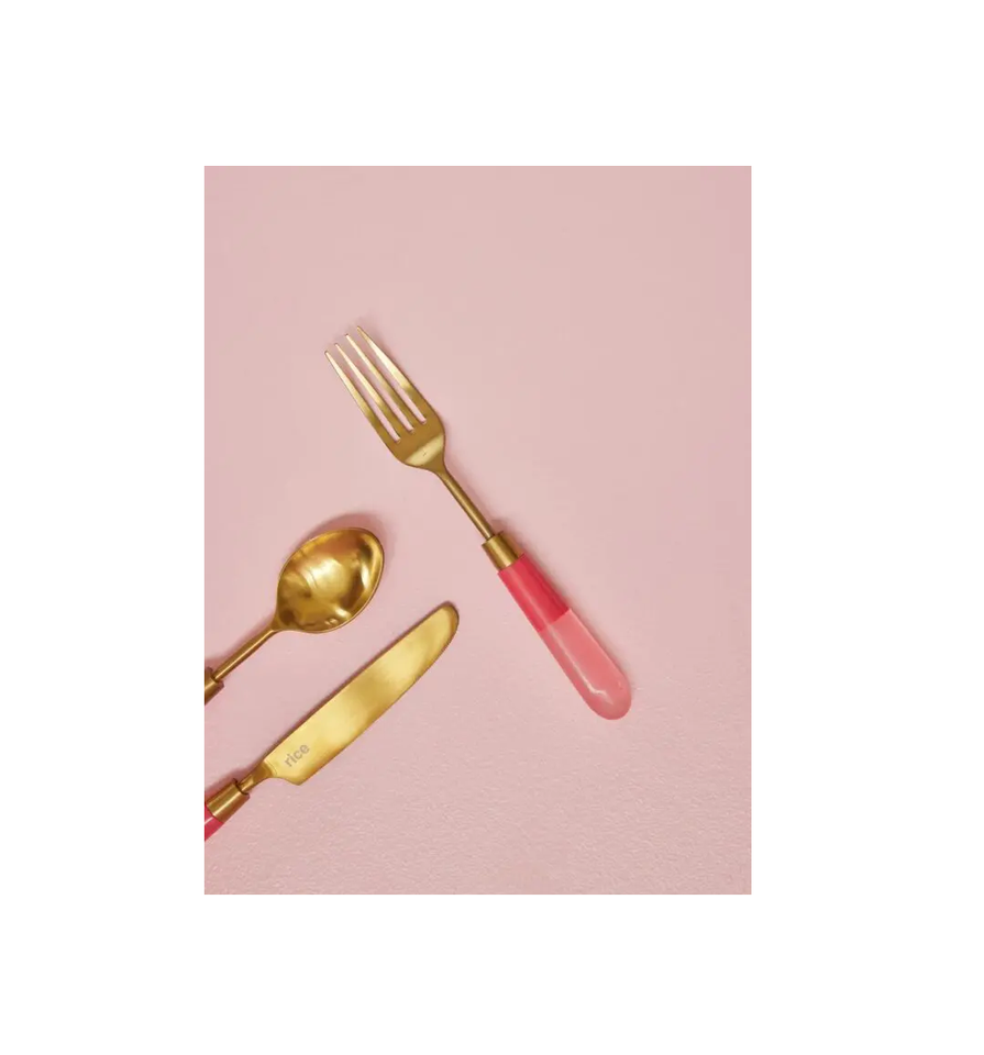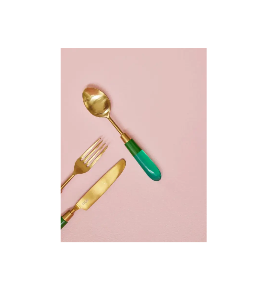 เครื่องใช้บนโต๊ะอาหารที่มีด้ามจับทำจากเรซินทองเหลืองช้อนมีดเนยส้อมอุปกรณ์ของหวานด้ามสีน้ำตาลขัดเงา