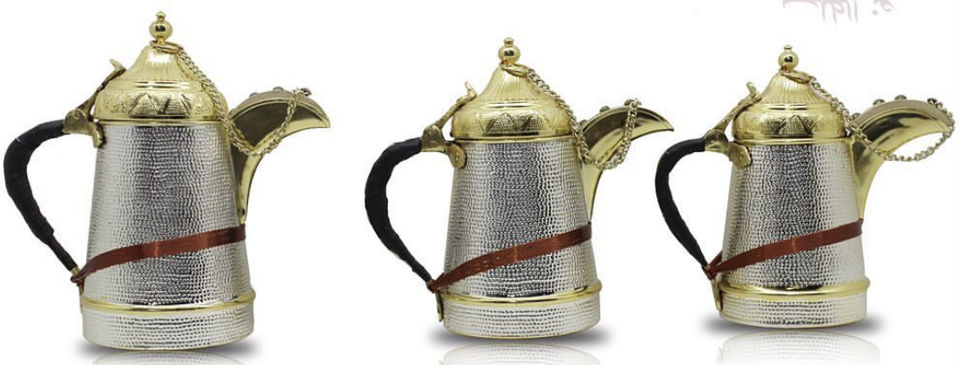 Dallah ทองเหลืองหม้อกาแฟสแตนเลสอุปกรณ์ดื่มปรับแต่ง18/8สำหรับโรงแรมงานแต่งงานงานปาร์ตี้บนโต๊ะขายส่ง