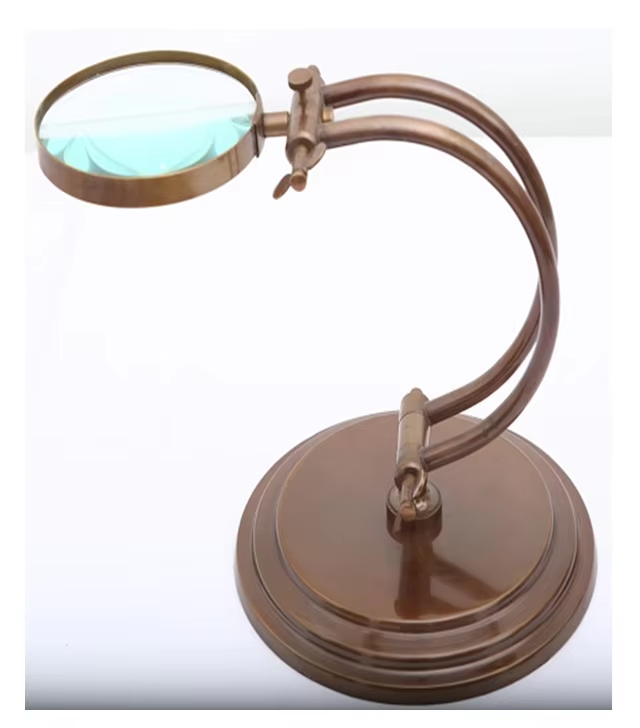 แว่นขยายตั้งโต๊ะแบบโบราณทำด้วยมือพร้อมฐานปรับได้