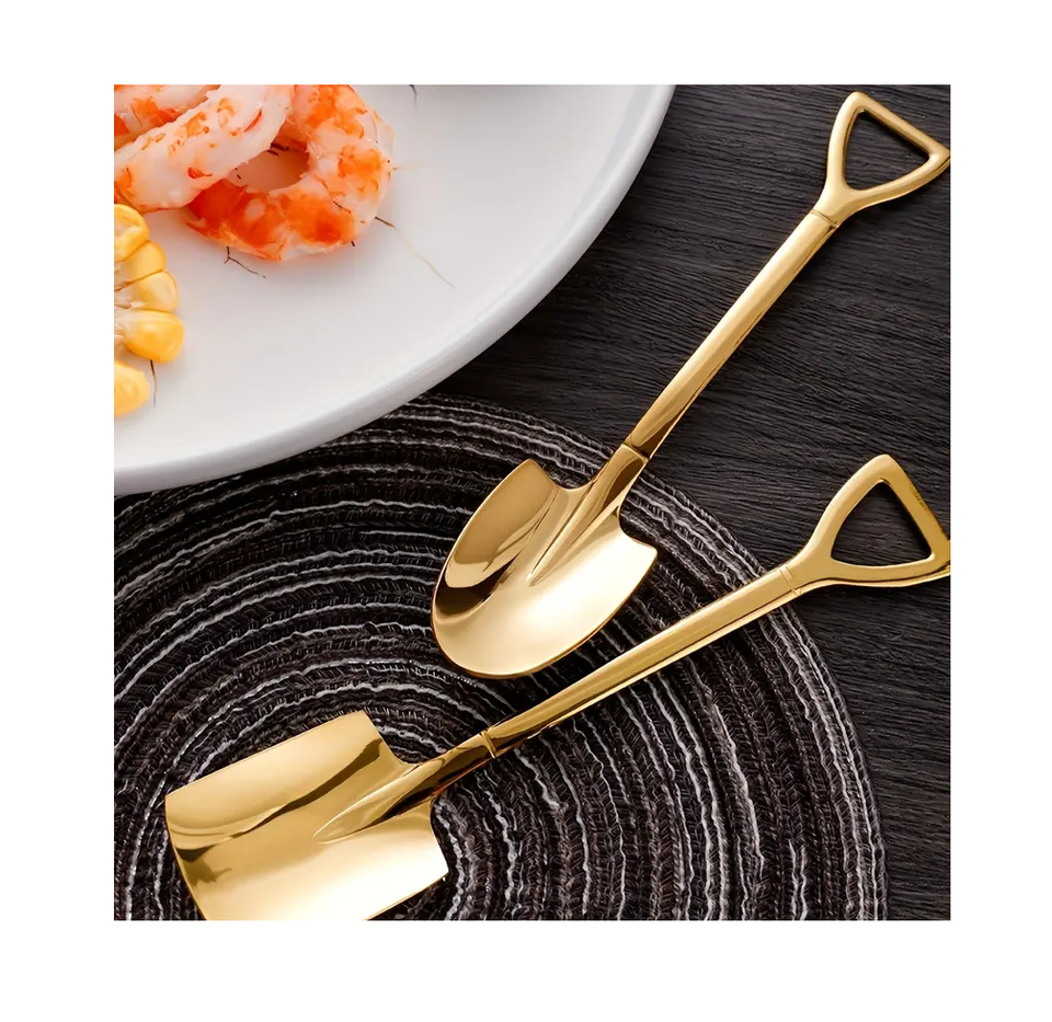 Brass Dessert Shovel Spoon Hotel Home Decor Kitchenware Catering Usage Shovel Shaped Cutlery Dessert Spoon