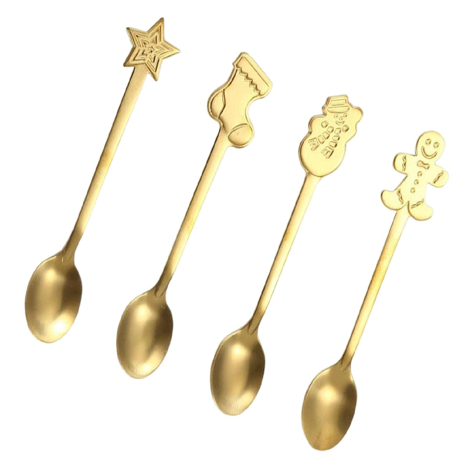 ช้อนขนมหวานทองเหลืองเคลือบด้านขัดเงา ดีไซน์หลากหลาย ด้ามสั้น สำหรับงานคริสต์มาส ช้อนทองเหลืองตกแต่ง