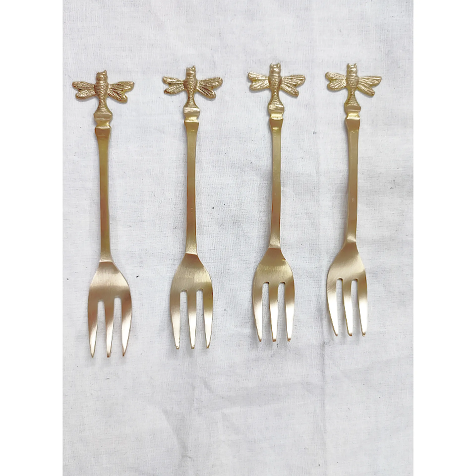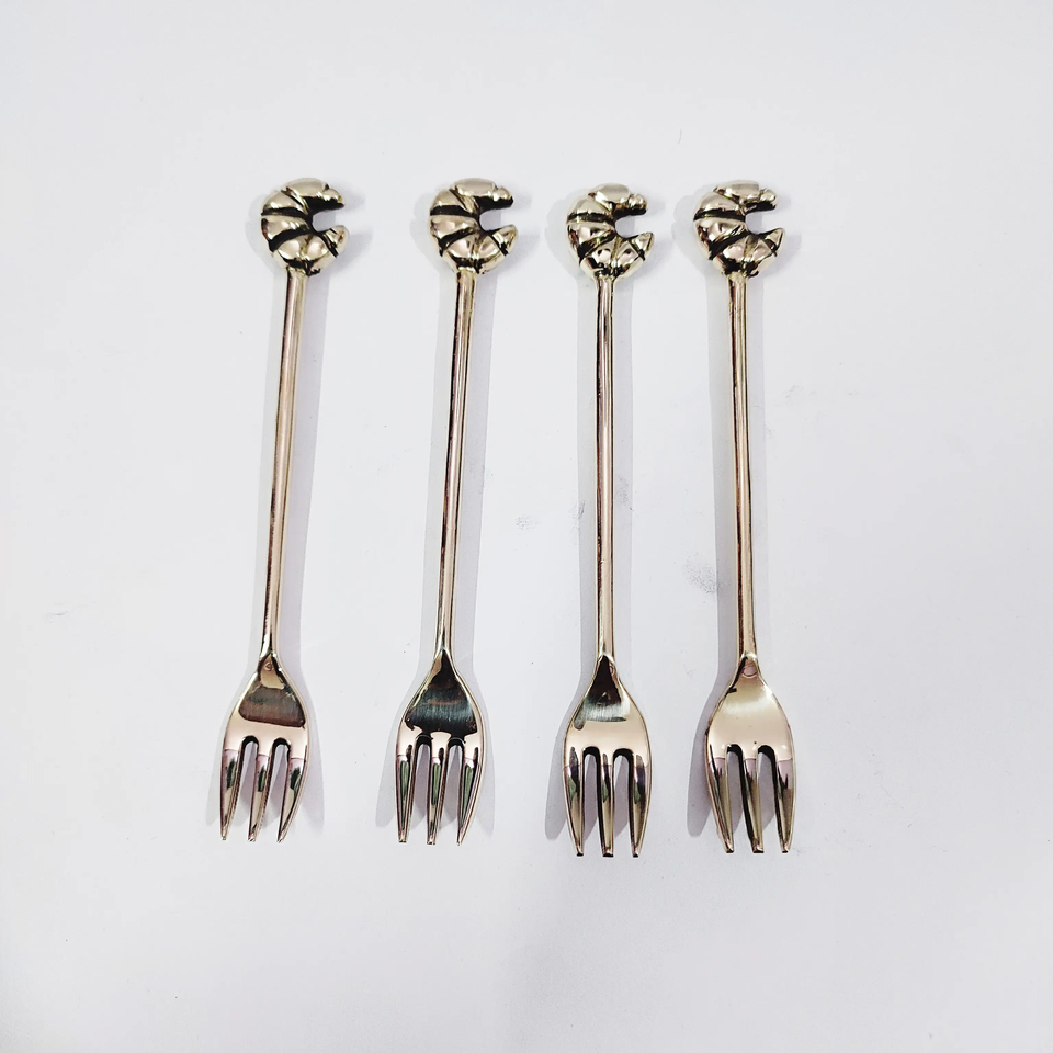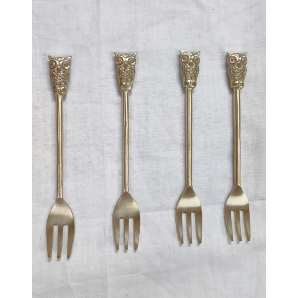 ช้อนส้อมขนมทองเหลืองด้ามยาวนกฮูกชุดช้อนขนมสำหรับร้านอาหาร