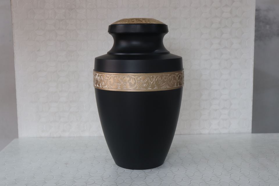 Domtop โกศเผาทองเหลืองกับหินอ่อนสีฟ้าเสร็จสิ้นและแกะสลักทองโกศงานศพพรีเมี่ยมสำหรับเถ้ามนุษย์
