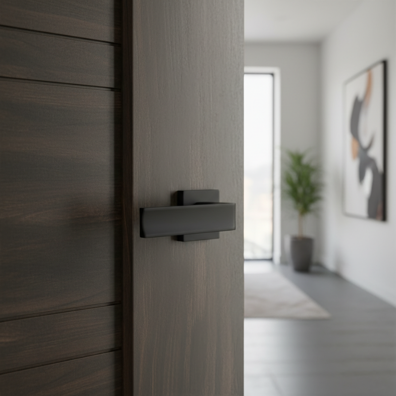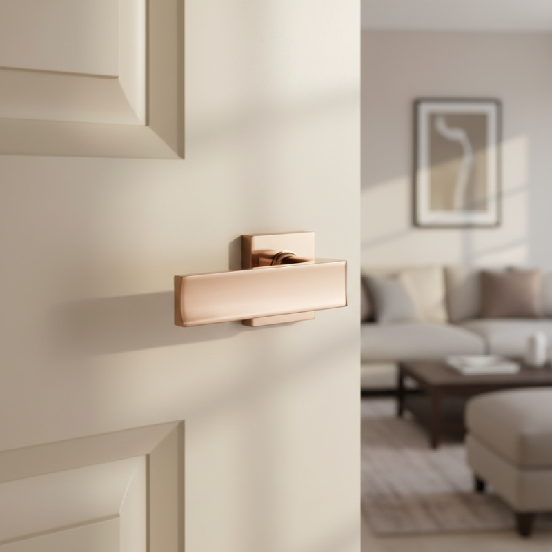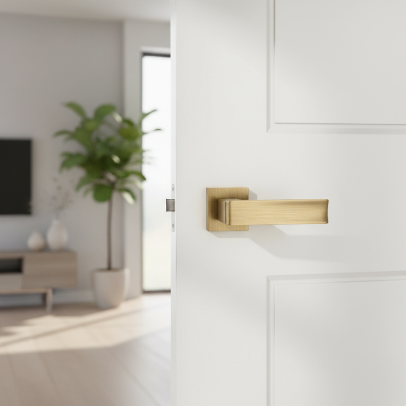 ชุดมือจับประตูทองเหลืองพร้อมกุญแจแบบฝัง | มือจับประตูดีไซน์เนอร์แบบก้านโยก สีโบราณ สีดำ สีกราไฟต์ และสีทอง สำหรับประตูภายใน