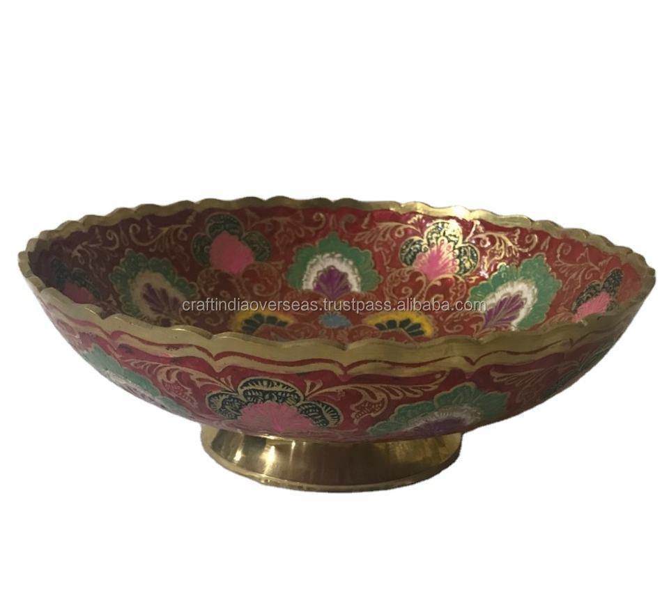 Brass Double Side Meena Bowl Multi Purpose Best Quality Handcrafted Fruit Serving Dishes High Finished Hand Painted Bowl
