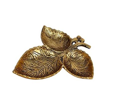 ชามทองเหลืองสำหรับผลไม้แห้งดีไซน์ทรงใบไม้ดีไซน์ทันสมัยขัดเงาสีทองเงางามสำหรับตกแต่งบ้าน