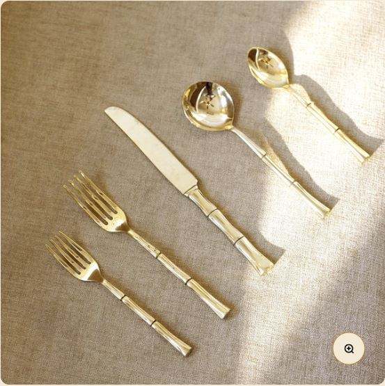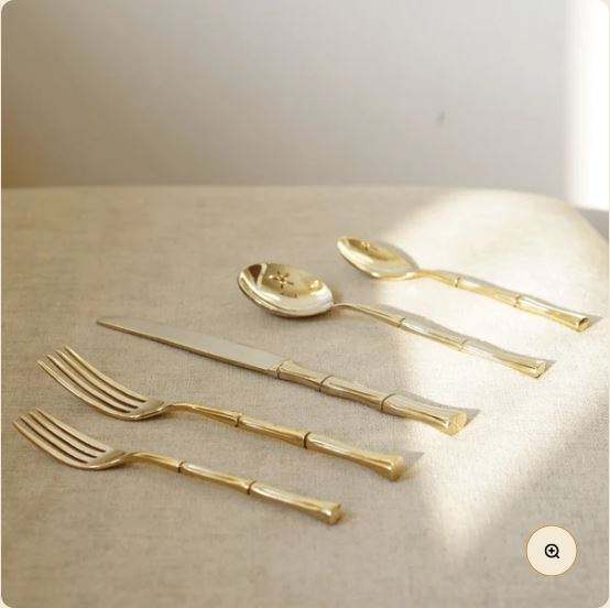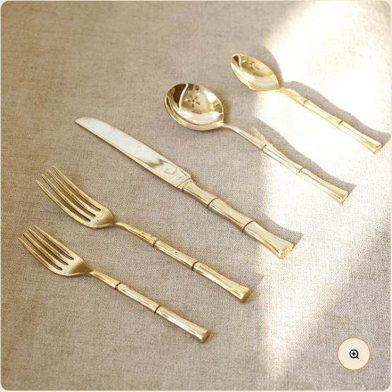 ชุดรับประทานอาหารค่ำทองเหลืองแกะสลักพร้อมช้อนส้อมแอปเปิ้ลโฮมชาสำหรับอาหารทานเล่นขนาดเล็กหรืออาหารบริสุทธ์