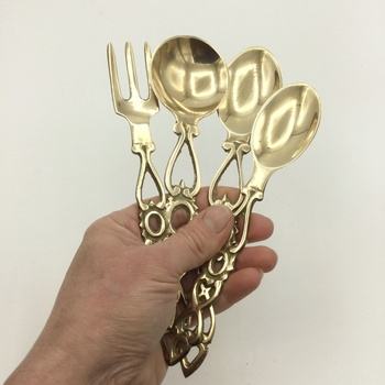 ชุดเครื่องใช้บนโต๊ะอาหารทองเหลืองในสไตล์วินเทจพร้อมด้วยสีทองเหมาะสำหรับการรับประทานอาหารที่บ้านและอุปกรณ์เครื่องครัวหรูหรา