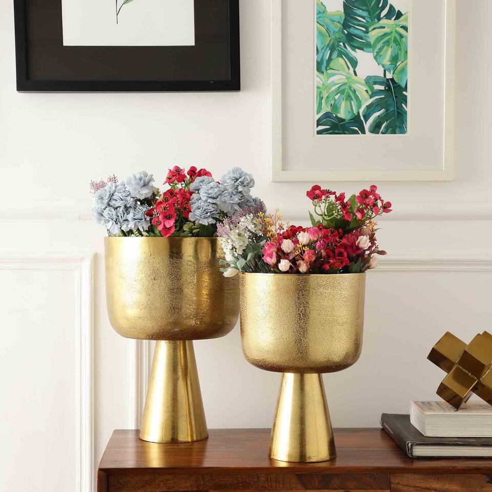 เครื่องปลูกดอกไม้ทองเหลืองพร้อมดีไซน์หนักวัสดุคุณภาพสูงกำหนดสีและขนาดที่กำหนดเองได้39ซม. x 39ซม. X 25ซม.