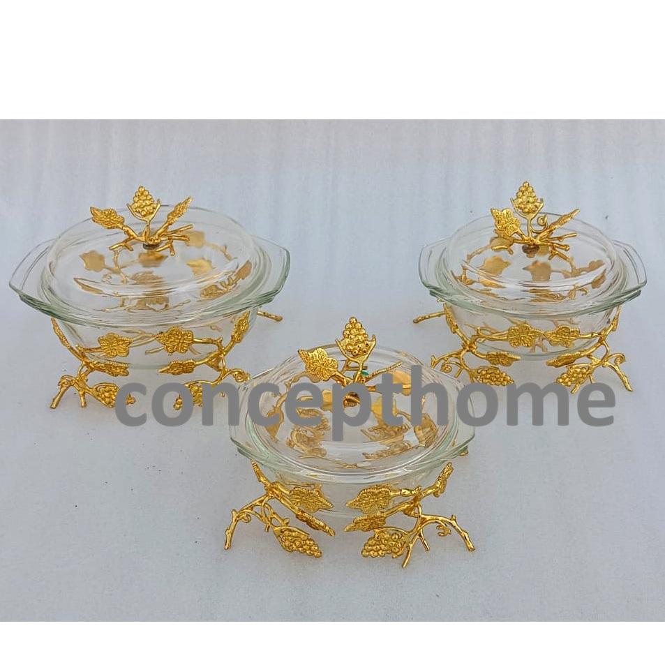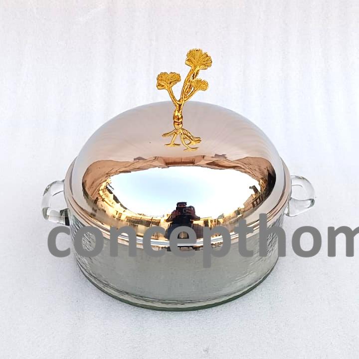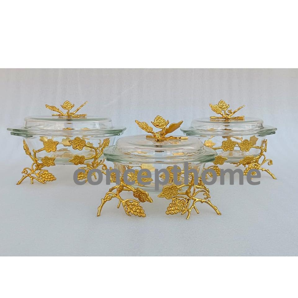ถาดเสิร์ฟอาหารทองเหลืองและแก้วพร้อมฝาปิด สำหรับใช้ในบ้าน ร้านอาหาร และเครื่องครัว ถาดเสิร์ฟอาหารตกแต่งสีทอง