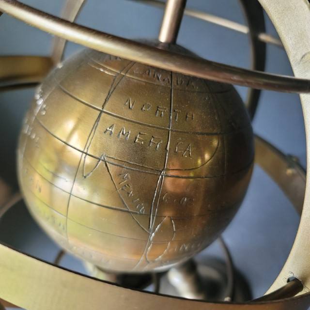 ฐานทองเหลืองทรงกลมอาร์มารี่ทองเหลืองทรงกลมฐานไม้สีดำตั้งโต๊ะสำหรับตกแต่งบ้านสำนักงานในโลก