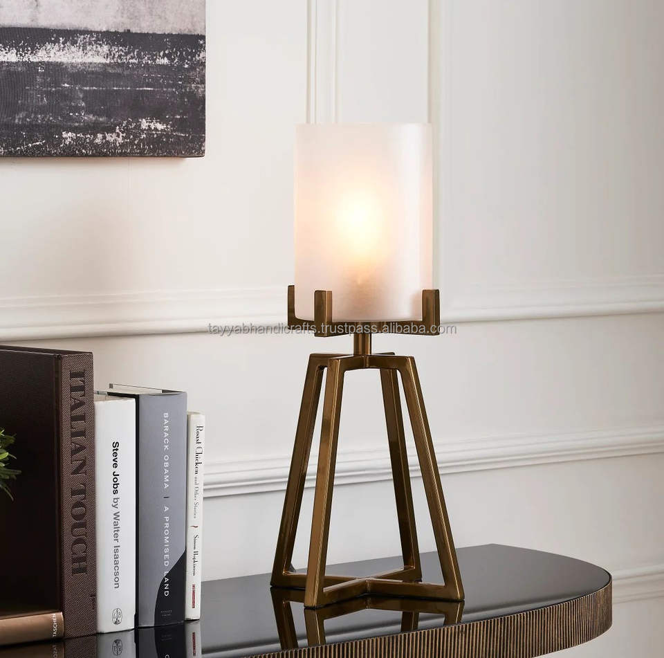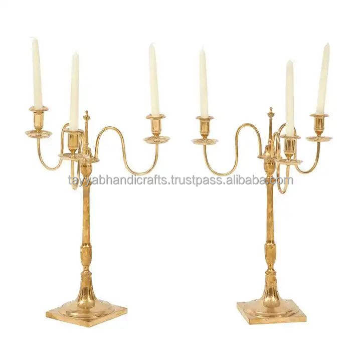 เชิงเทียนทองเหลืองสีทองที่วางเทียนตกแต่งชิ้นกลางโต๊ะแต่งงานทำจากหัตถกรรม tayyab
