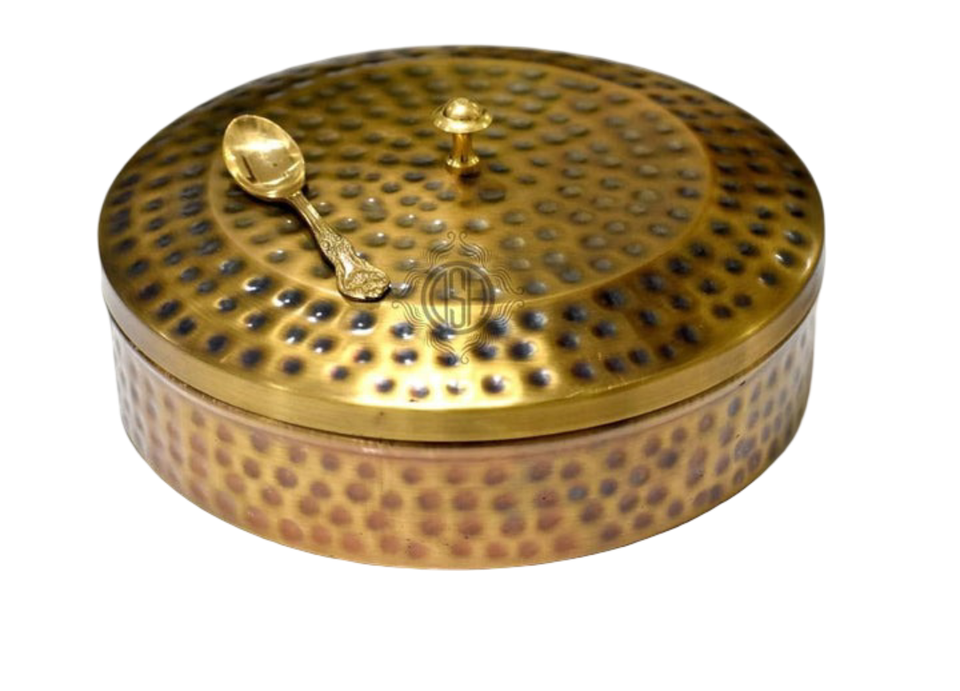กล่องใส่เครื่องเทศดีไซน์เนอร์เคลือบทองเหลือง แบบซ้อนได้ ถอดประกอบได้ ลายตอก สำหรับใส่เครื่องปรุงอาหาร