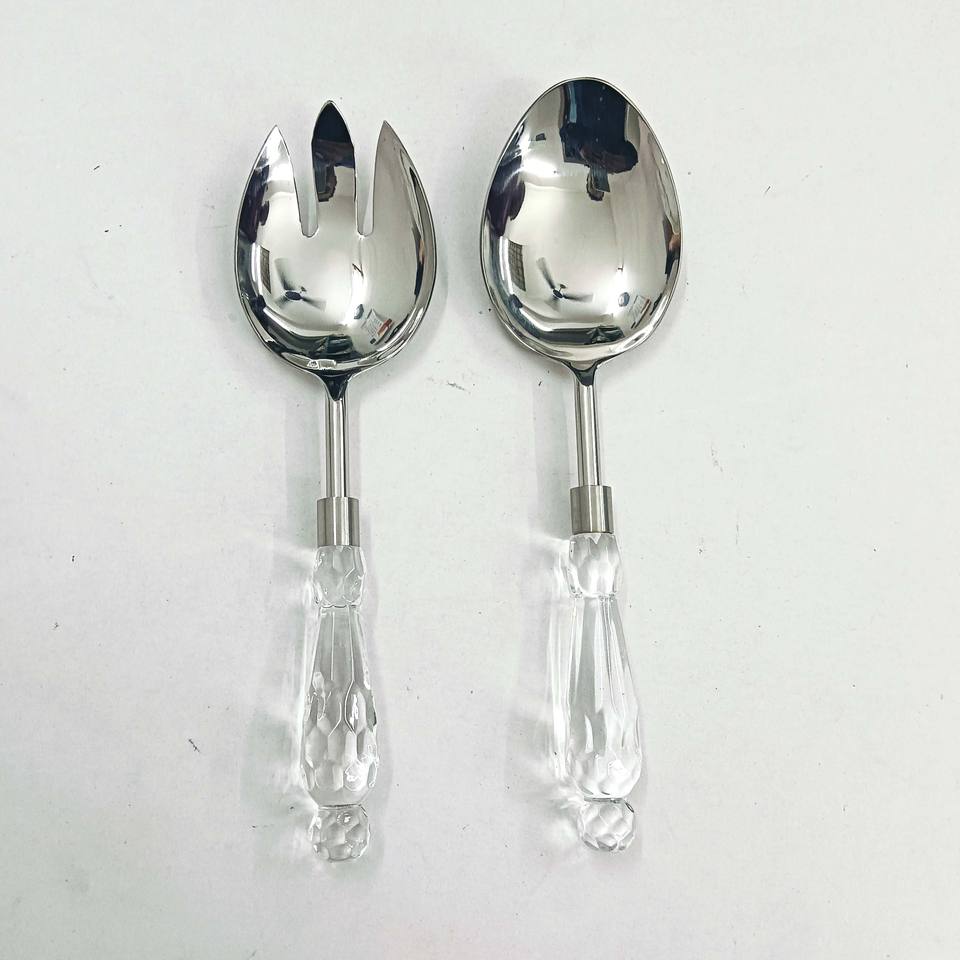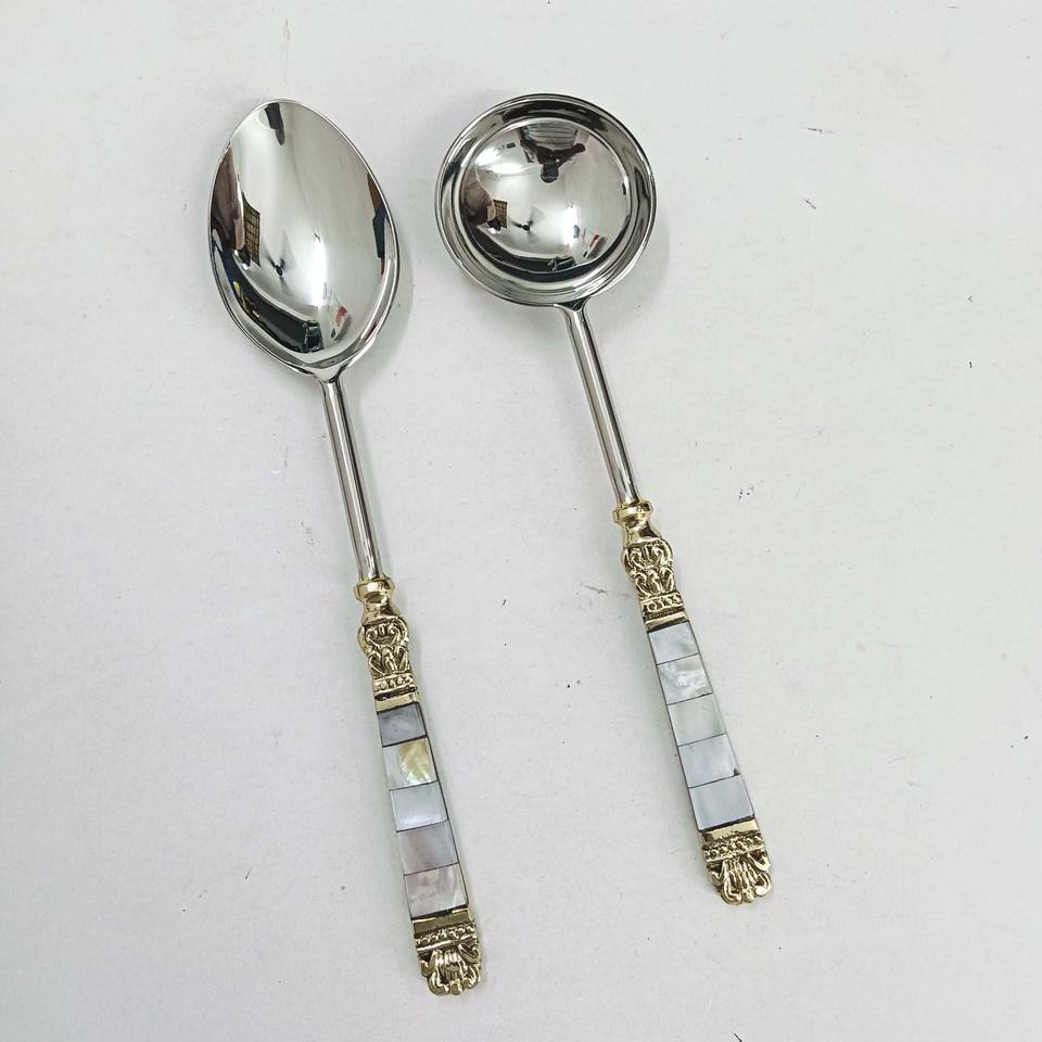 ชุดสลัดสแตนเลสด้ามไม้ถูพื้นทองเหลืองสีทองชุดเสริฟอาหารสำเร็จรูปแวววาวเสิร์ฟสลัด