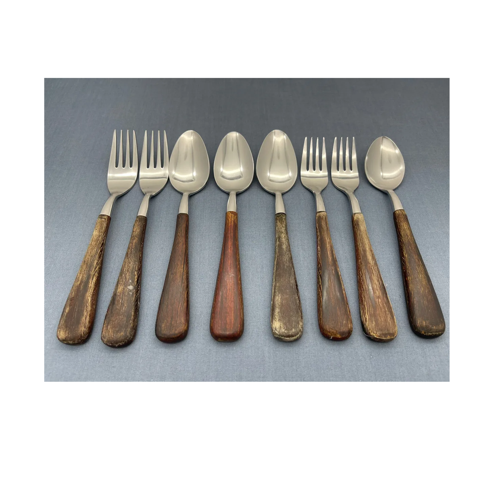 Brass Gold Plated Dessert Fork Spoon with Wooden Handle Mirrored steel Flatware Items at Reasonable Rate