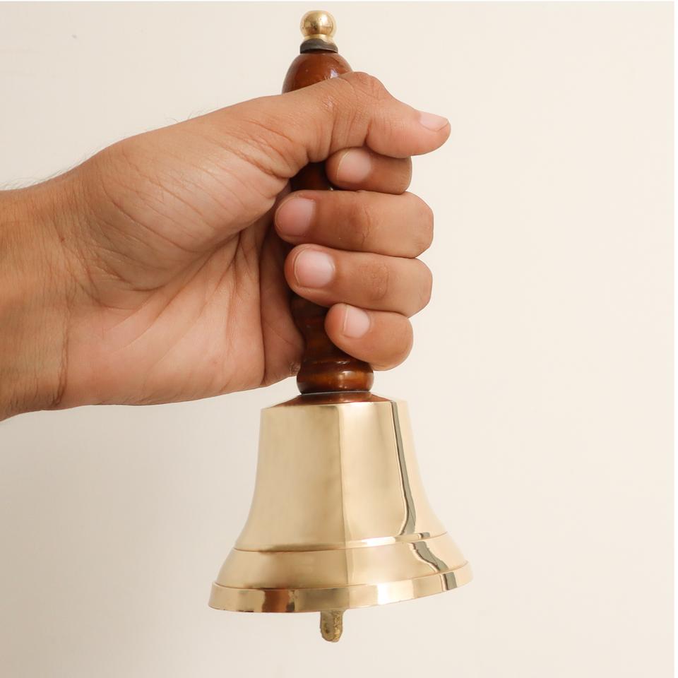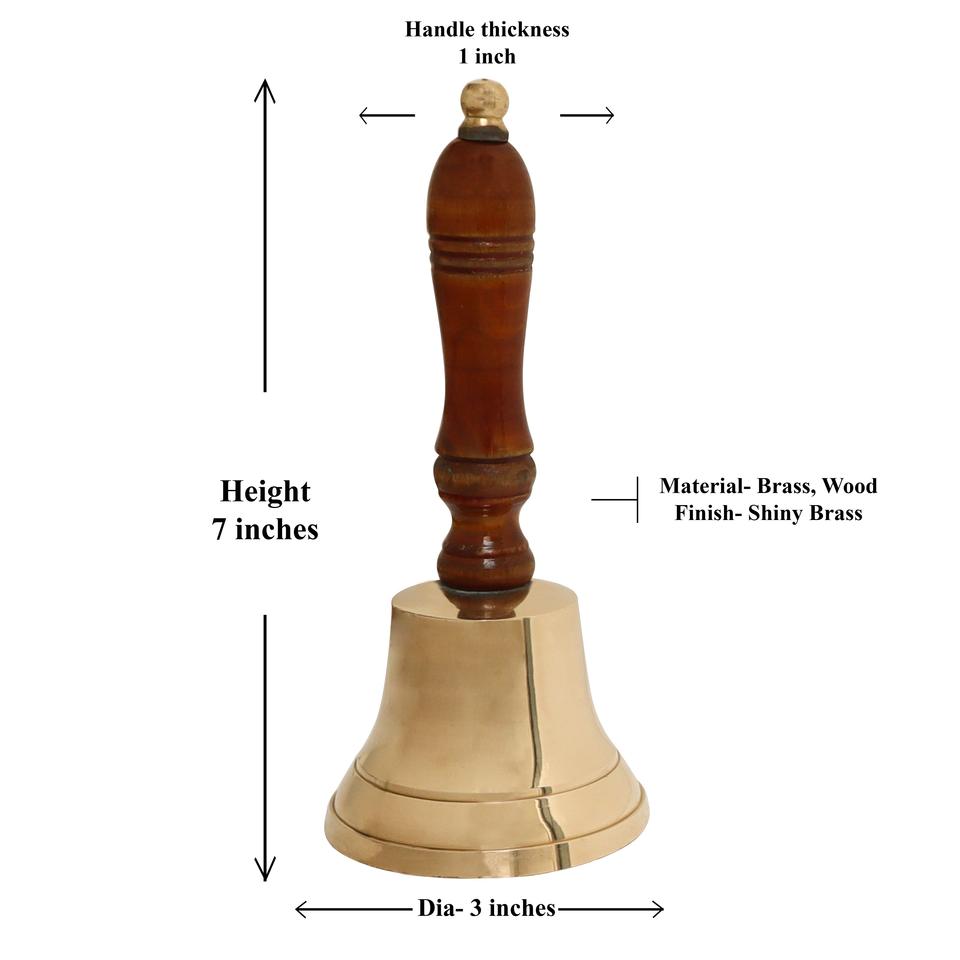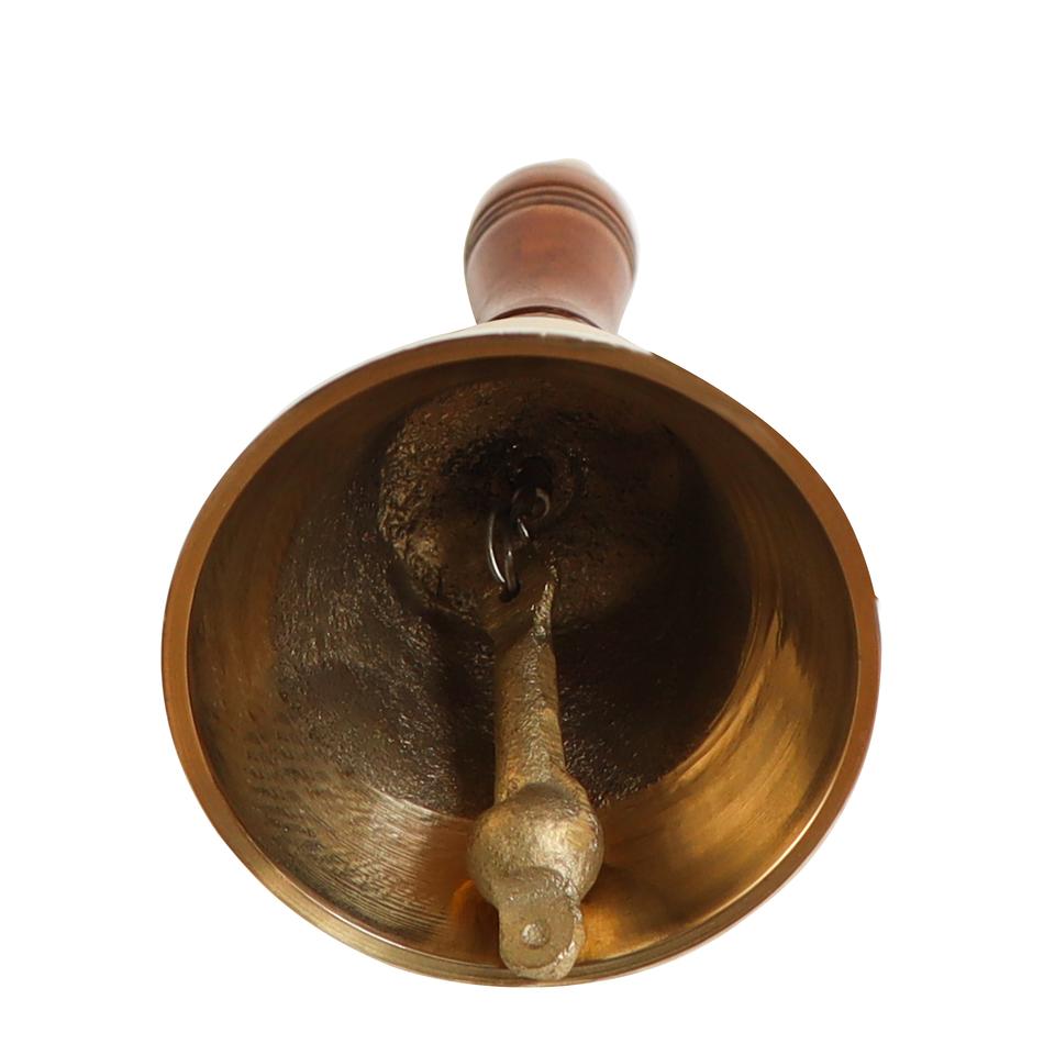 ระฆังทองเหลืองสลักขนาด7นิ้วพร้อมที่จับไม้สลักโลโก้แบบกำหนดเองของขวัญตกแต่งบ้าน
