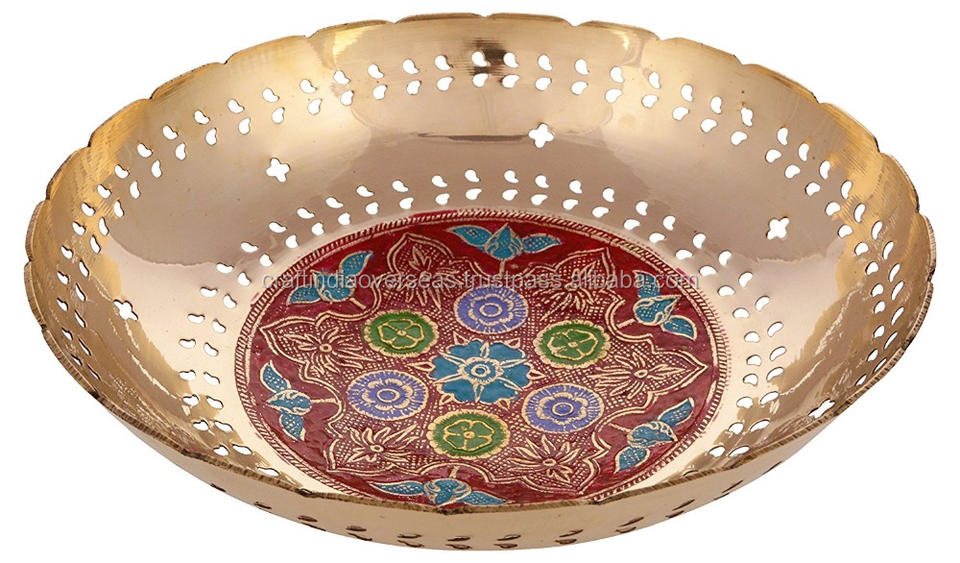 ชามหัตถกรรมทองเหลืองพร้อมสีสัน Meena Handcrafted ขายดีที่สุดขวดดีไซน์ใหม่อินเทรนด์ตกแต่งโชว์รูมแสดงเถ้า Urn