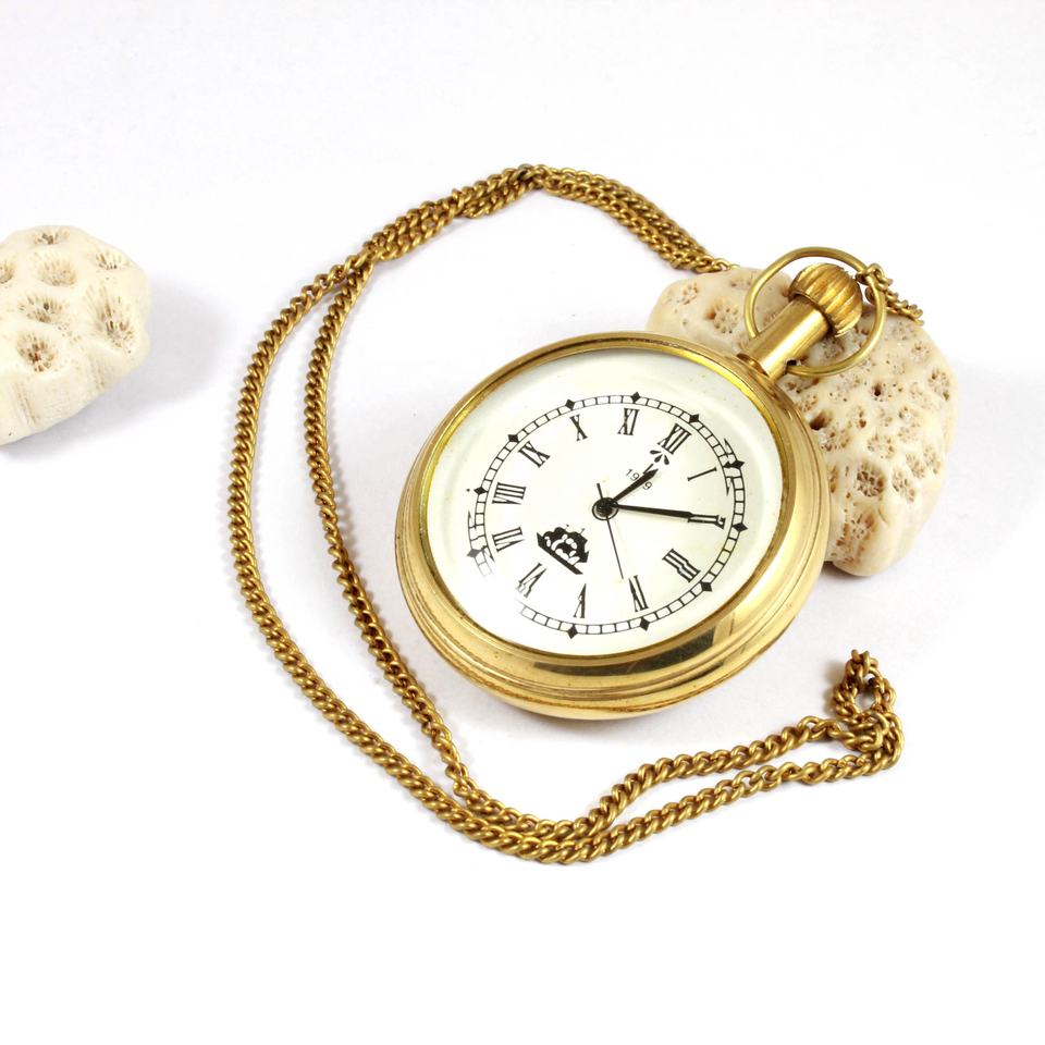 นาฬิกาพกทำมือทองเหลืองสไตล์ยุโรปโบราณ พร้อมสายคล้องในกระเป๋า PW828