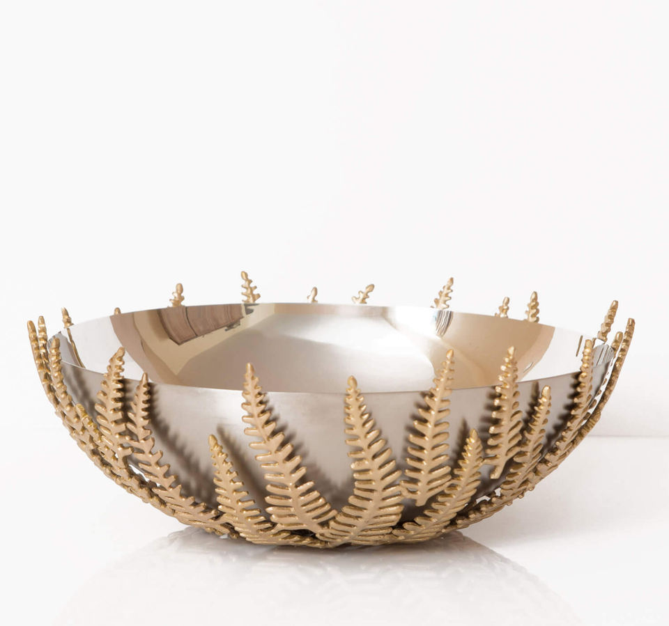 ชามใบเฟิร์นประดับตกแต่งทำจากทองเหลืองโบราณคุณภาพสูง