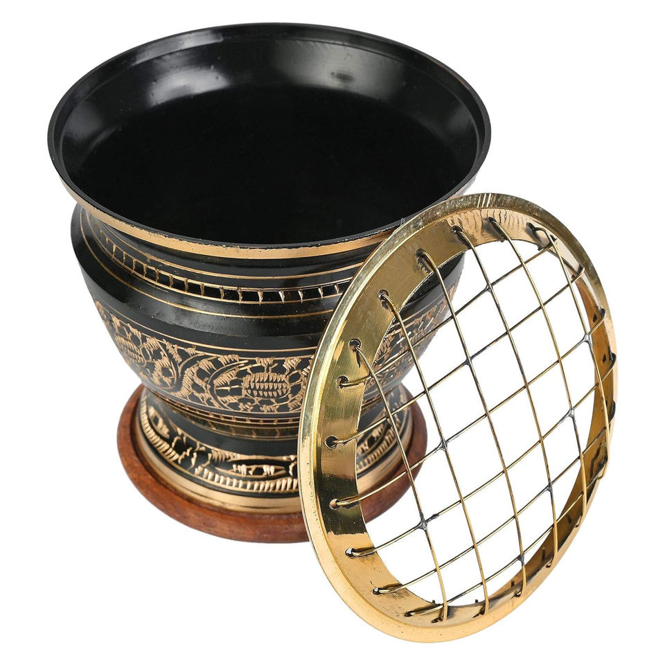 เตาน้ําหอมทองเหลืองแกะสลักด้วยสีดําสําเร็จรูปและที่รองแก้วไม้คุณภาพดีที่สุดขายส่งเตาน้ําหอมถ่านตกแต่ง