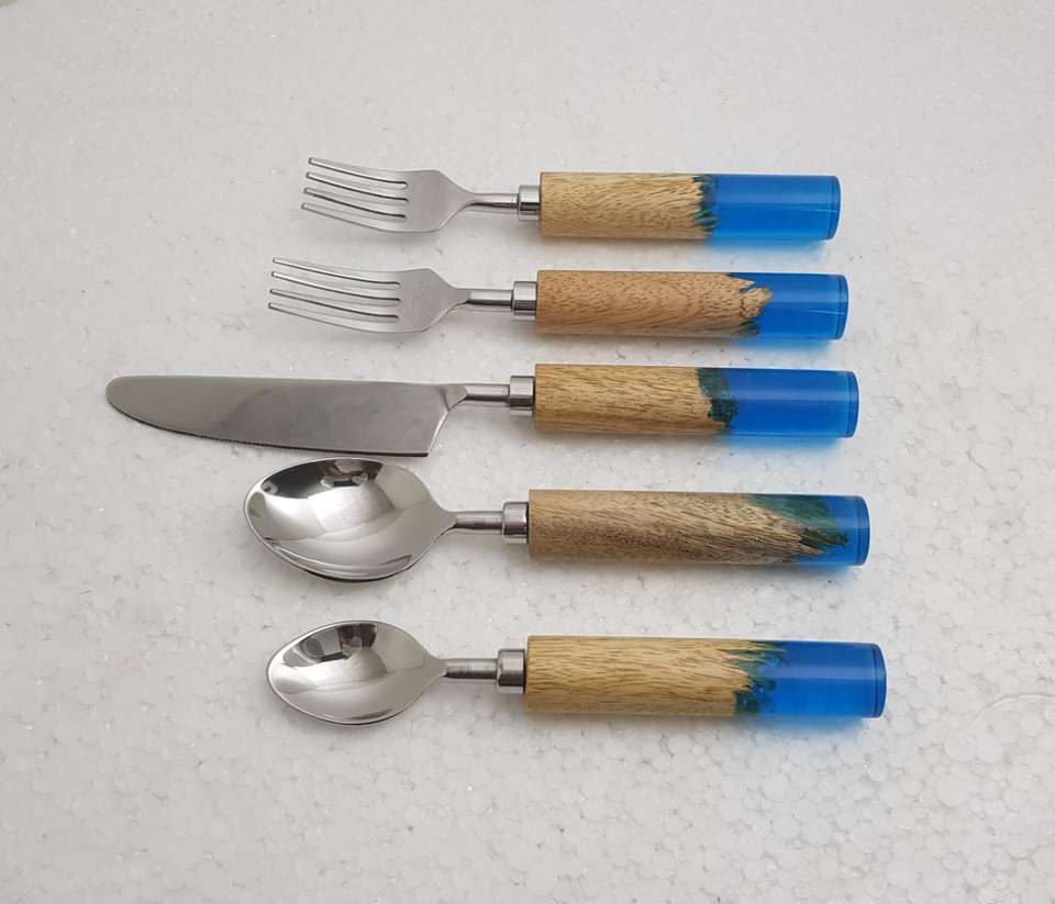 ชุดเครื่องใช้บนโต๊ะอาหารด้ามทำจากทองเหลืองฝังทำจากเรซินสีฟ้าชุดเครื่องใช้บนโต๊ะอาหารชุดรับประทานอาหาร5ชิ้น