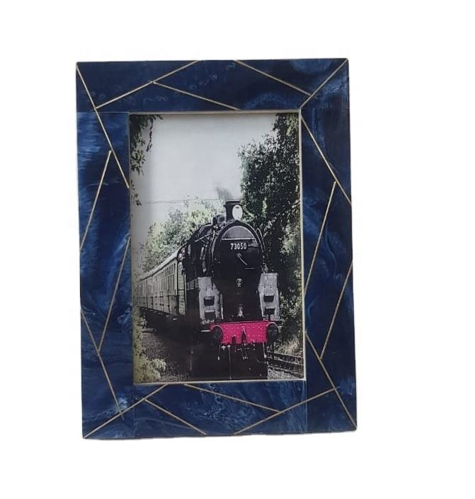 Brass Inlay Blue Resin Hot Selling Photo Frame Picture Photo Frame Flowers for Decoration Wedding Artificial Picture Frame