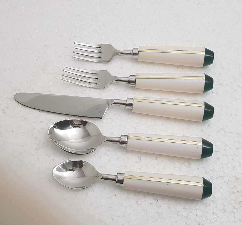 ชุดช้อนส้อมสแตนเลสสตีล ด้ามเรซิ่นฝังทองเหลือง คุณภาพดีที่สุด ทันสมัย ชุด 5 ชิ้น