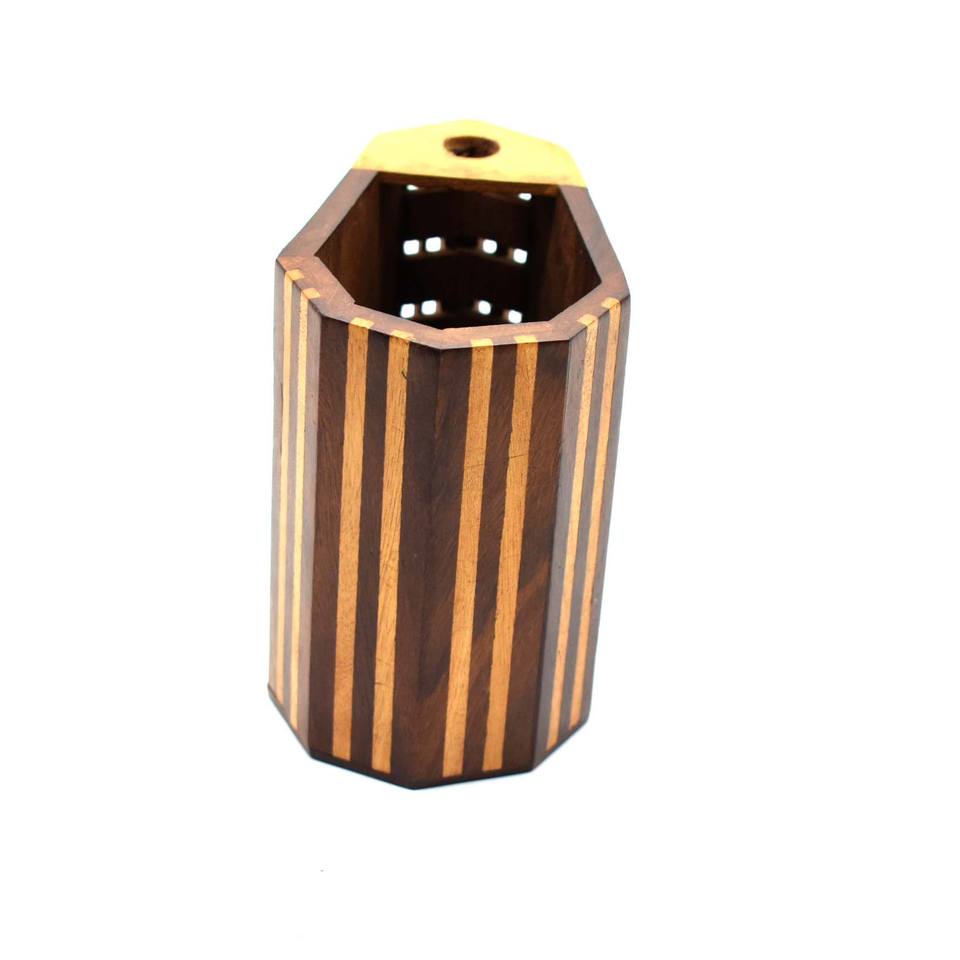 ที่ใส่ปากกาไม้ทำมือขนาดเล็ก พร้อมลายสี่เหลี่ยมฝังทองเหลือง สำหรับตกแต่งโต๊ะทำงาน