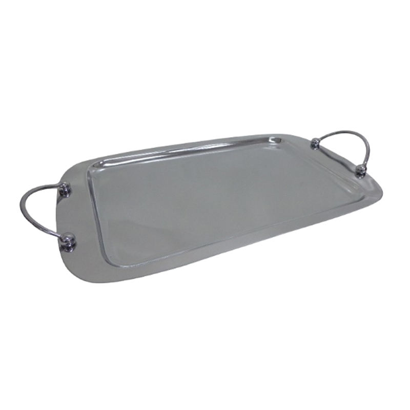ถาดทองเหลืองและเหล็กทรงสี่เหลี่ยมผืนผ้าพร้อมที่จับทำจากโครเมี่ยมใช้สำหรับเสิร์ฟถาดตกแต่งจานสำหรับร้านอาหารโรงแรมบาร์เครื่องครัว