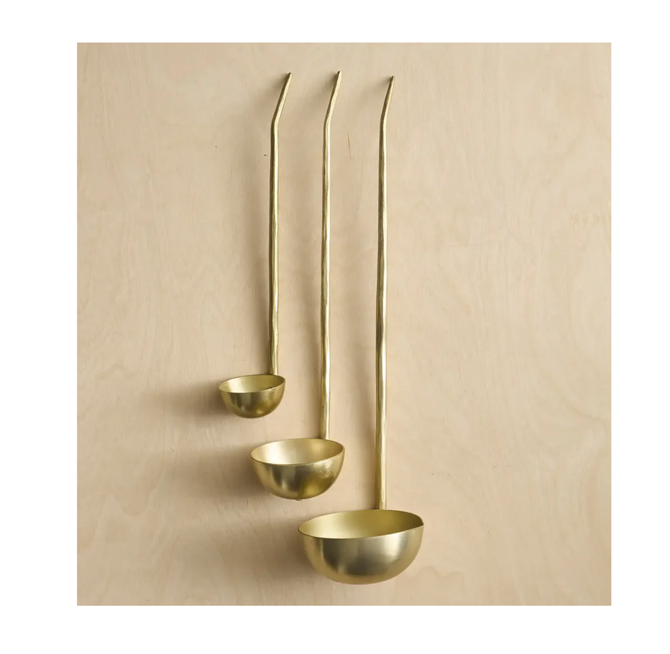 ทัพพีทองเหลืองช้อนเสิร์ฟเครื่องใช้บนโต๊ะอาหารและช้อนทำอาหารจากนักออกแบบงานฝีมือชั้นนำ