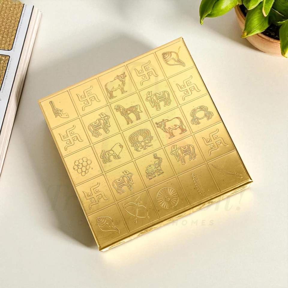 กล่องทองเหลืองสำหรับใส่เครื่องราง แมนจูชา ยันตรา พร้อมสัญลักษณ์ ปัญชาชรช์ ต้นไม้แห่งชีวิต ลิบรา ชังค์ แกะสลักลายศักดิ์สิทธิ์ สำหรับพิธีกรรมวาสตู