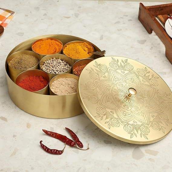 ชุดกล่องเครื่องเทศทองเหลืองพร้อมฝาปิดแบบถอดได้ เกรดอาหาร ซ้อนกันได้ ดีไซน์ทันสมัย ปรับความจุได้ตามต้องการ