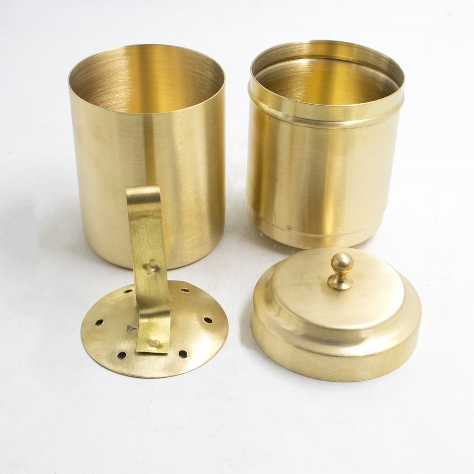 ชุดกรองกาแฟทองเหลืองแบบด้านพร้อมตัวกด ชุดชงกาแฟแบบดั้งเดิมของอินเดียใต้ คุณภาพพรีเมียม เหมาะสำหรับเป็นของขวัญและใช้ในบ้าน